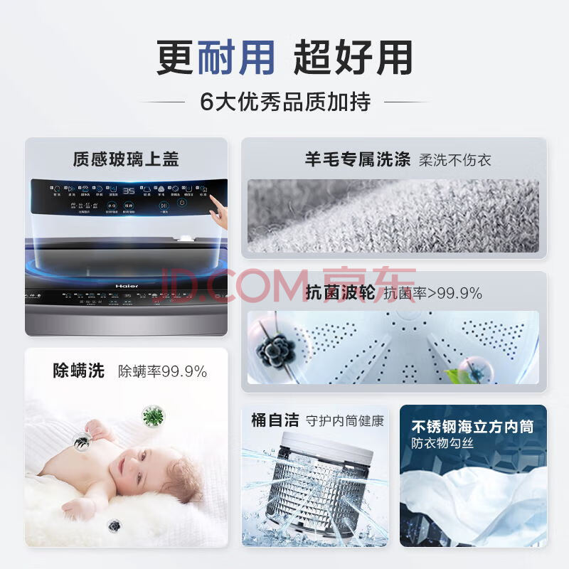 商品相册:海尔(Haier)波轮洗衣机全自动家用 10公斤大容量 防菌除螨EB100M30Plus2第