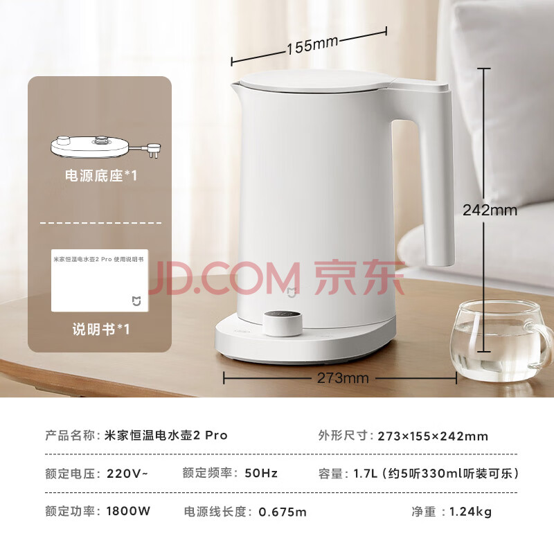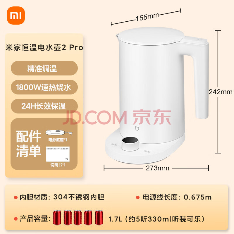 商品相册:米家小米电热水壶2 Pro烧水壶全自动恒温电热水壶保温一体煮水壶家用轻音烧水 食品级304不锈钢 1.7升第