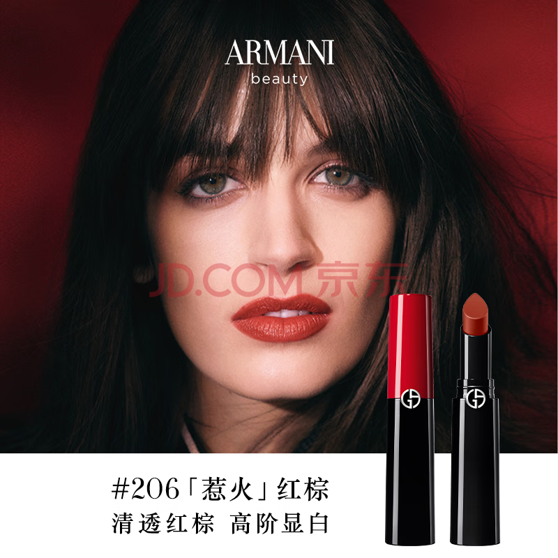 商品相册:阿玛尼口红权力唇膏#206惹火红棕 素颜不沾杯润唇膏生日礼物礼盒送女友第