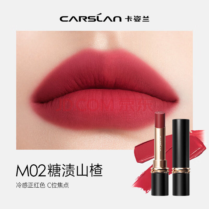 商品相册:卡姿兰(Carslan)雾吻口红唇膏不易沾杯哑光显白M02(糖渍山楂)3.2g 生日礼物送女生第