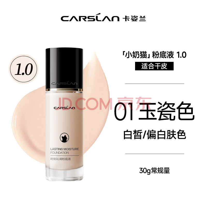 商品相册:卡姿兰(Carslan)小奶猫粉底液遮瑕持久保湿提亮不脱妆干皮01#玉瓷色30g生日礼物女第