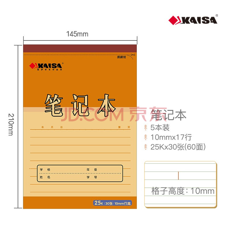 商品相册:凯萨(KAISA)25K30张笔记本 上翻加厚纸5本装练习本记事软抄本作业本开学文具第