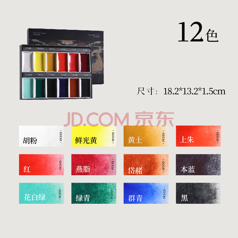 商品相册:鲁本斯12色国画颜料套装 古彩固体水彩水粉颜料 儿童中国水墨画工具标准色0122005001第