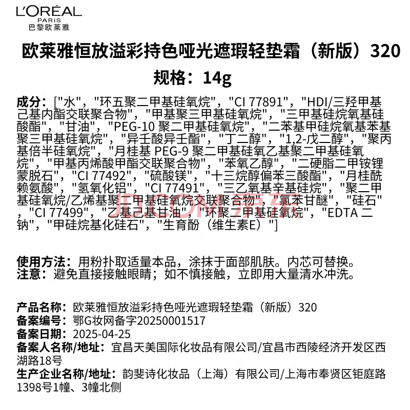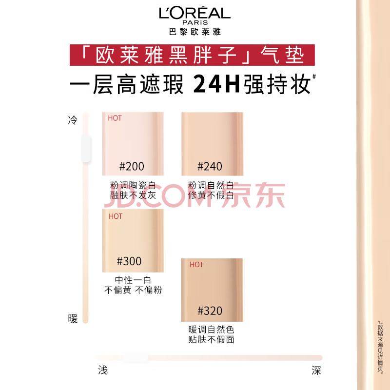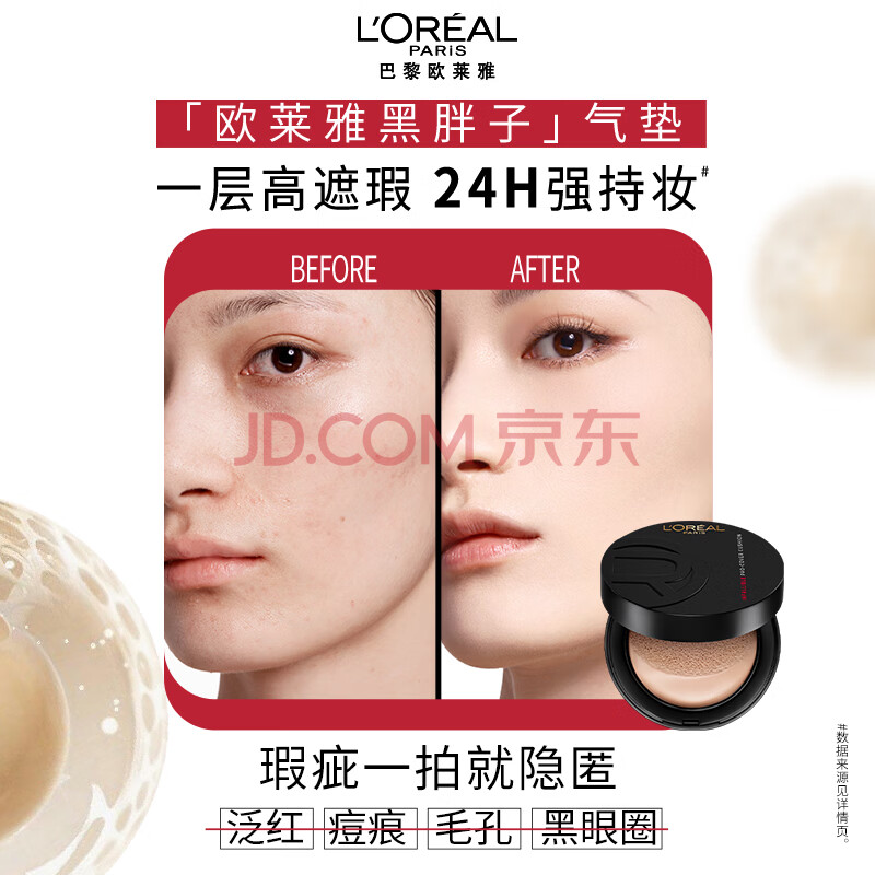 商品相册:欧莱雅黑胖子气垫粉底液320黄调偏白遮瑕控油持妆生日礼物送女友第