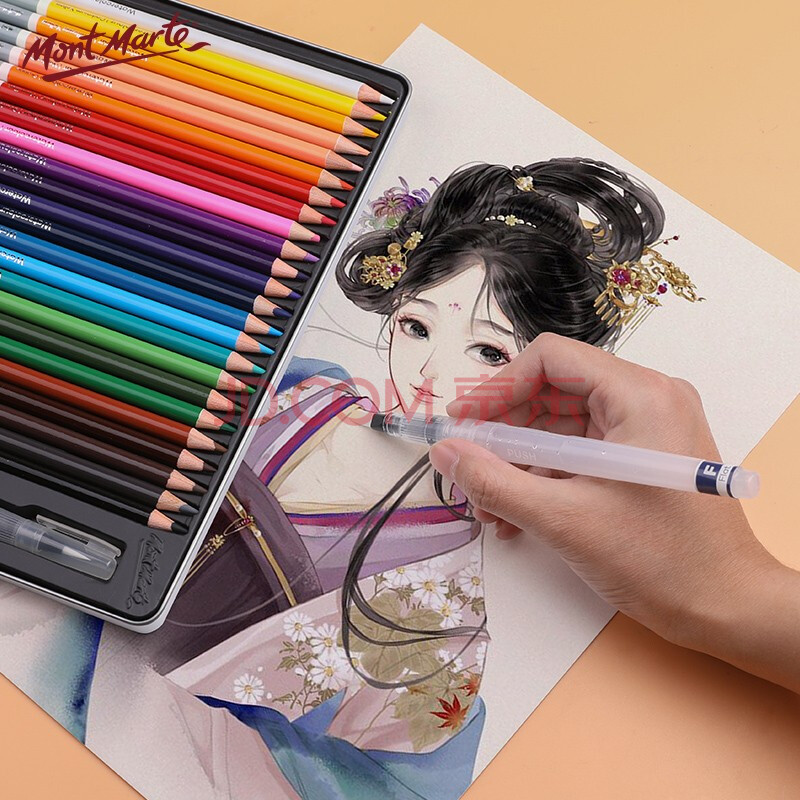 商品相册:蒙玛特(Mont Marte)自来水笔3支装 水彩画笔固体水彩颜料画画笔套装 扁峰软头毛笔大中小美术绘画笔BMHS0045 速写 马克笔绘画第