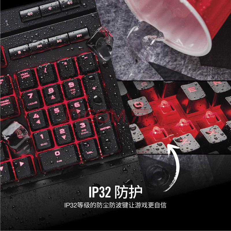 商品相册:美商海盗船 (USCORSAIR) K68 机械键盘 有线连接 游戏键盘 全尺寸 红色背光 IP32防护 黑色 樱桃红轴第