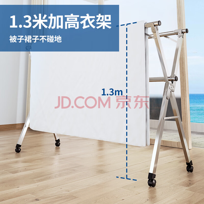商品相册:LYNN晾衣架落地 衣架阳台折叠三杆晾晒架不锈钢伸缩室内外移动晒被架第