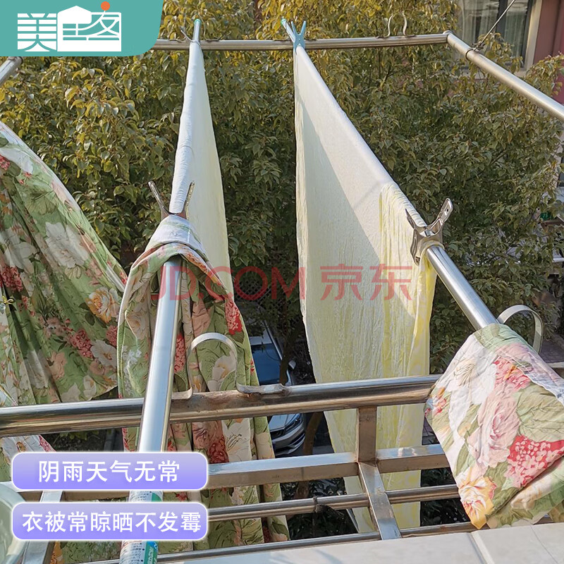 商品相册:美居客 晒衣杆 免打孔不锈钢伸缩晾衣杆窗外晾晒杆固定式单杆2.12-3.9米第