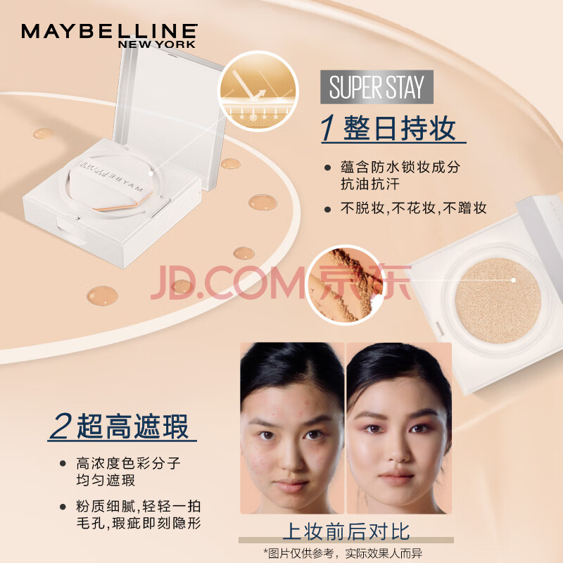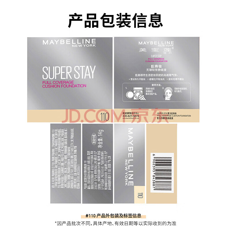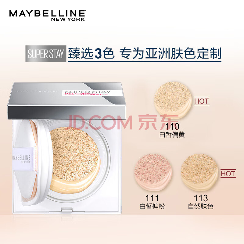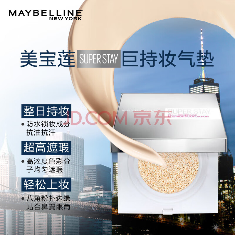 商品相册:美宝莲superstay巨持妆气垫BB持久遮瑕控油 110白皙偏黄14g生日礼物女第
