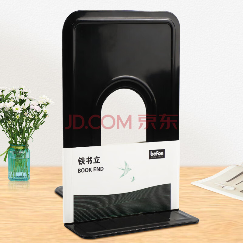 商品相册:得印9英寸(高23cm)金属铁书立架3549 书立夹书籍挡靠夹学生文具挡书板办公用品黑色2片/付第