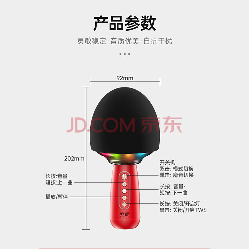 商品相册:索爱(soaiy)MC15 蓝牙无线麦克风 K歌话筒音响音箱一体麦克风 手机直播录音会议话筒K歌宝 中国红第