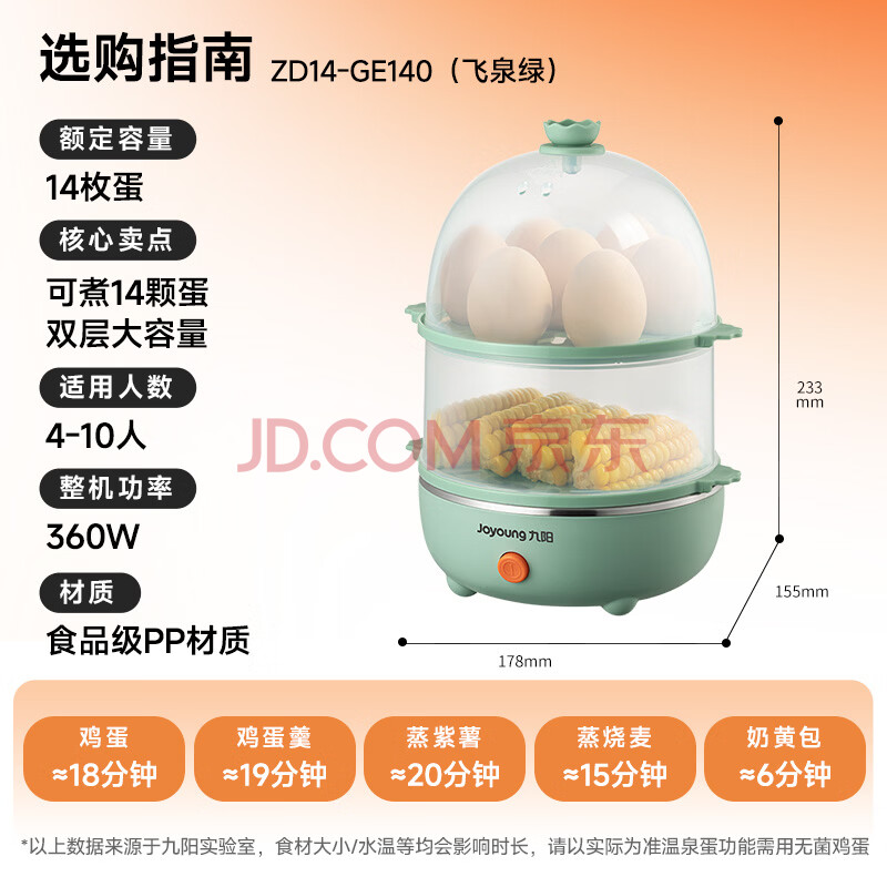 商品相册:九阳(Joyoung)煮蛋器多功能智能蒸蛋器 14个蛋量 ZD14-GE140(飞泉绿)第
