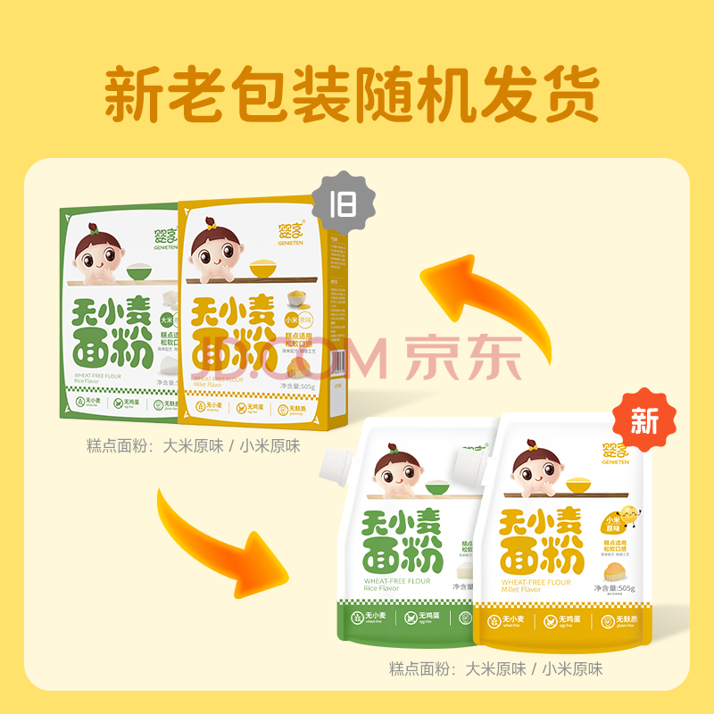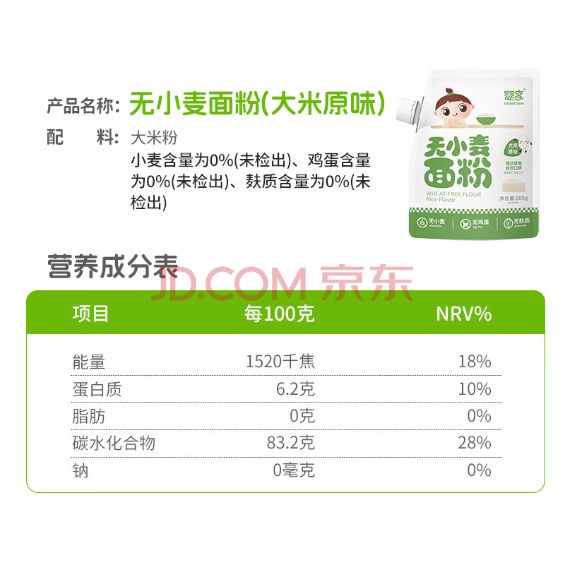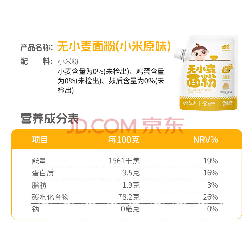 商品相册:婴享儿童糕点面粉无小麦无麸质烘焙含婴儿宝宝辅食食谱小米原味505g第1张/共8