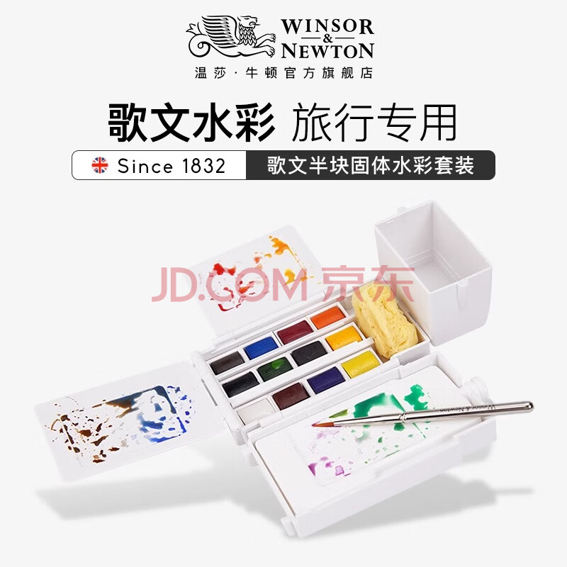 商品相册:温莎牛顿【弗洛伊德同品牌】歌文水彩颜料固体水彩户外写生水彩绘画颜料12色半块豪华套第
