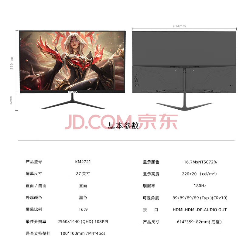 商品相册:康佳(KONKA)27英寸显示器 2K 180Hz FreeSync 低蓝光不闪屏 Fast IPS 游戏电竞显示器 KM2721第