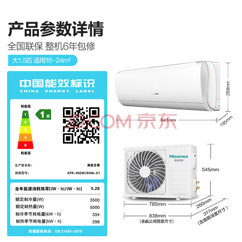 商品相册:海信1.5匹 新一级大风量速冷暖 AI智控 自清洁变频防直吹壁挂式空调挂机 KFR-35GW/S590-X1第
