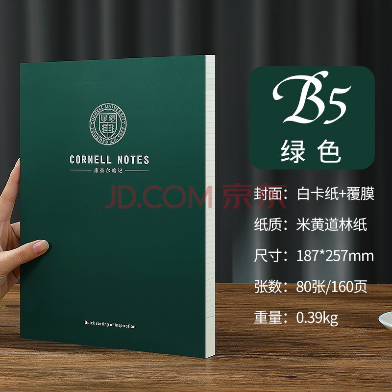 商品相册:嘉然恒 B5康奈尔笔记本本子学习5R高效记忆思维导图大学生复习考研考公备考记事本-横线款-墨绿色第