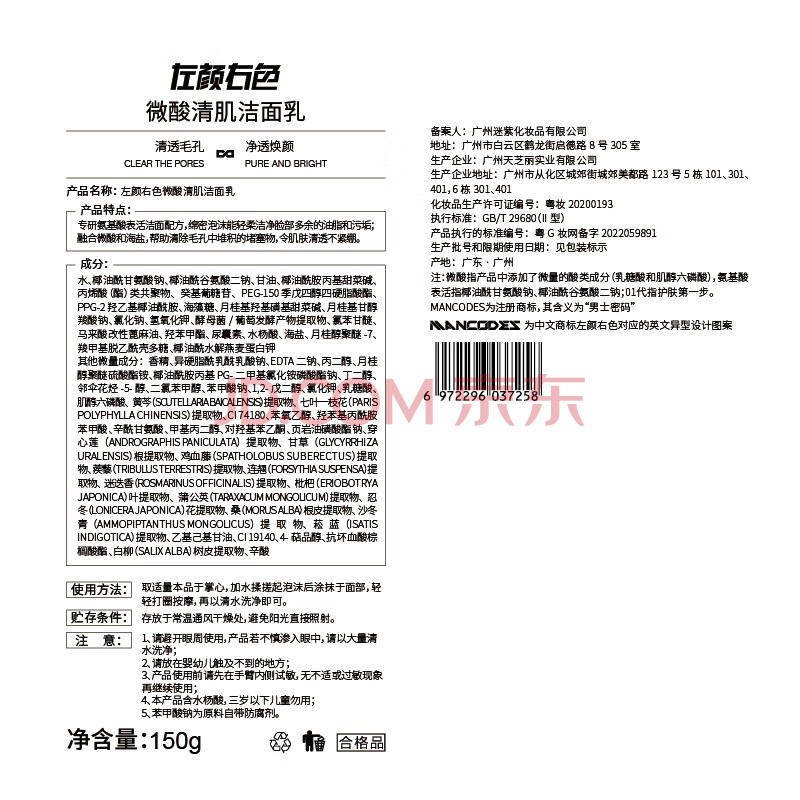 商品相册:左颜右色郑恺代言男士微酸清肌护肤品礼盒保湿控油洁面乳开学季送礼第