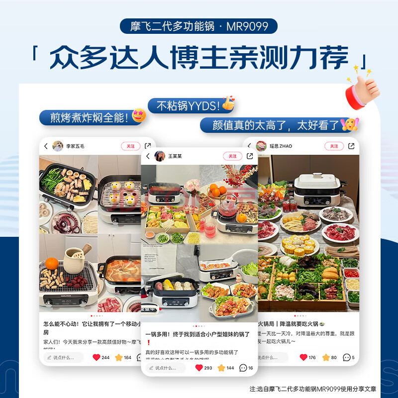 商品相册:摩飞电器(Morphyrichards)多功能锅 家用电火锅电蒸锅5升可预约大功率分体式蒸煮一体不沾煎烤料理锅MR9099薄荷绿第