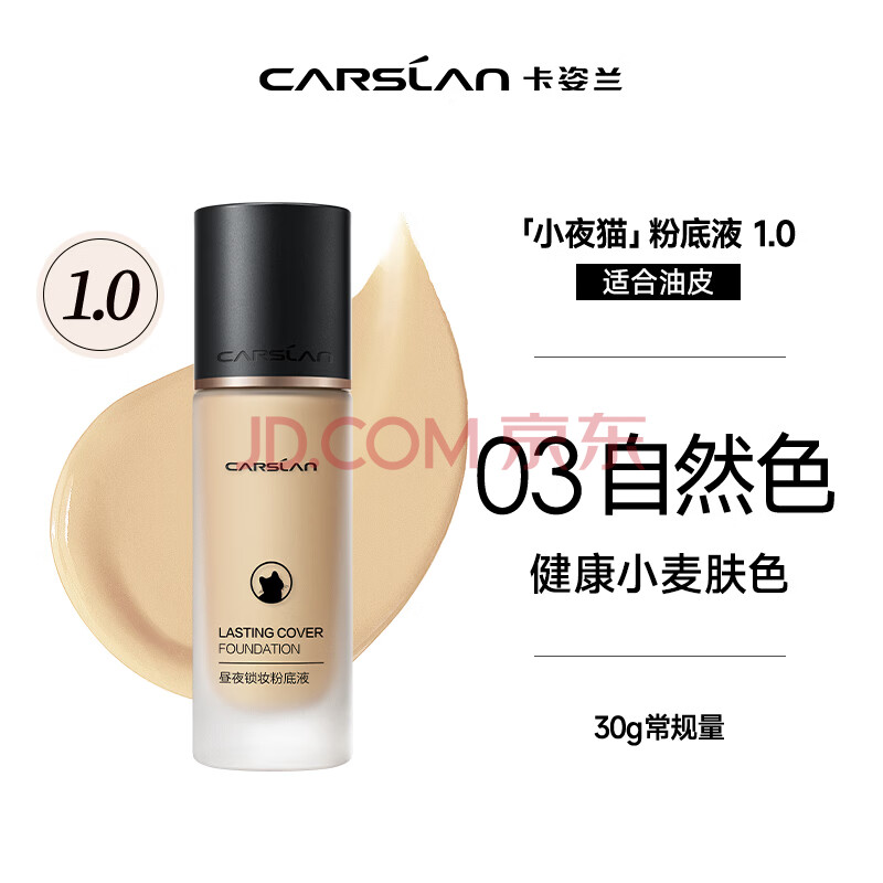 商品相册:卡姿兰(Carslan)小夜猫粉底液遮瑕持久保湿控油不脱妆油皮03#自然色30g生日礼物女第