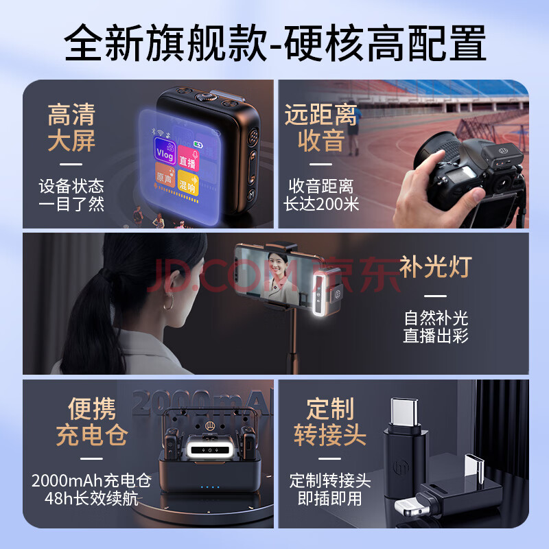 商品相册:好牧人无线麦克风领夹麦小蜜蜂一拖二收音器抖音主播声卡直播录音设备唱歌降噪视频采访话筒手机相机电脑第