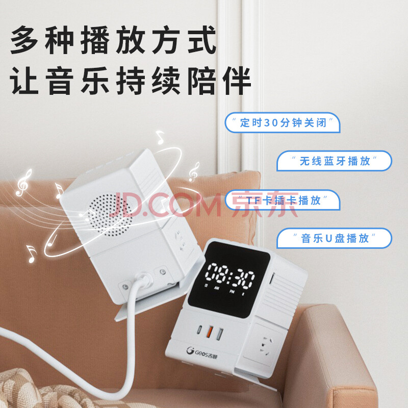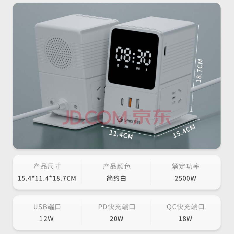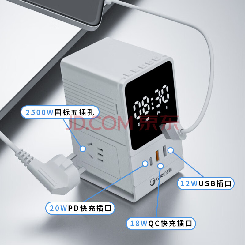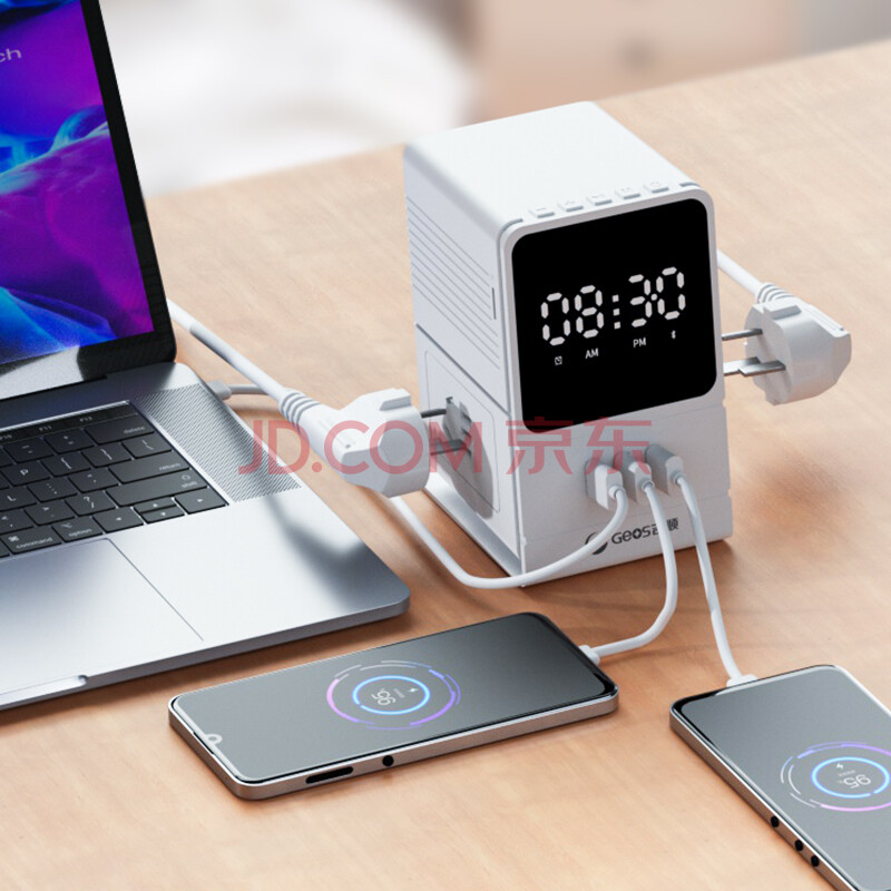 商品相册:吉顺立式插座桌面排插线板快充电源延长接线板家用插排usb多功能床头闹钟新国标第