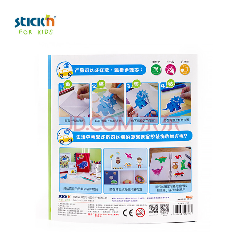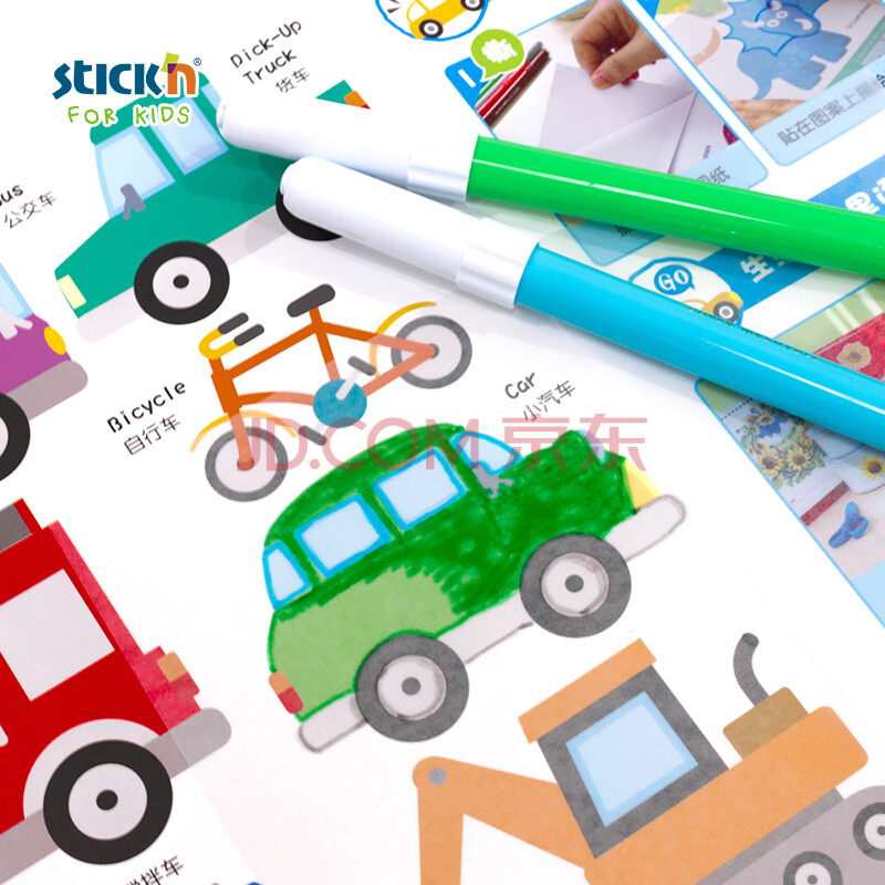 商品相册:N次贴(STICKN)儿童绘画本涂鸦彩绘本贴画书幼儿专注力训练填色本早教亲子互动-交通工具39307第