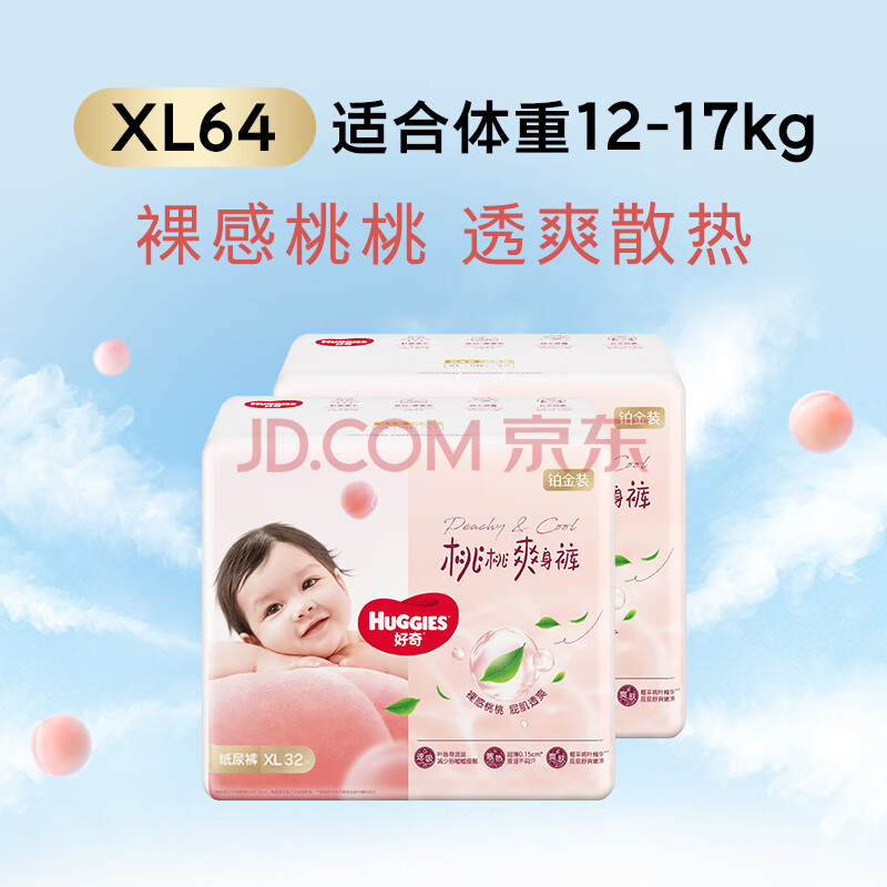 商品相册:好奇(Huggies)铂金装小桃裤纸尿裤XL64片(12-17kg)加大号尿不湿【透爽散热】第