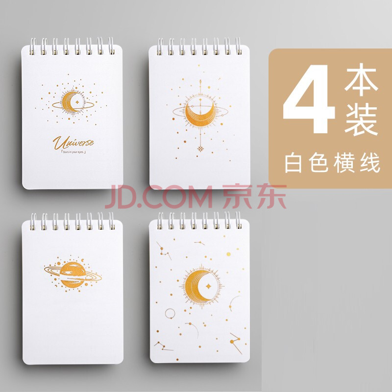 商品相册:金值 白色星空线圈本/4本装 A7小笔记本子便携式记事本学生随身携带迷你口袋本随手记单词本小号记录第