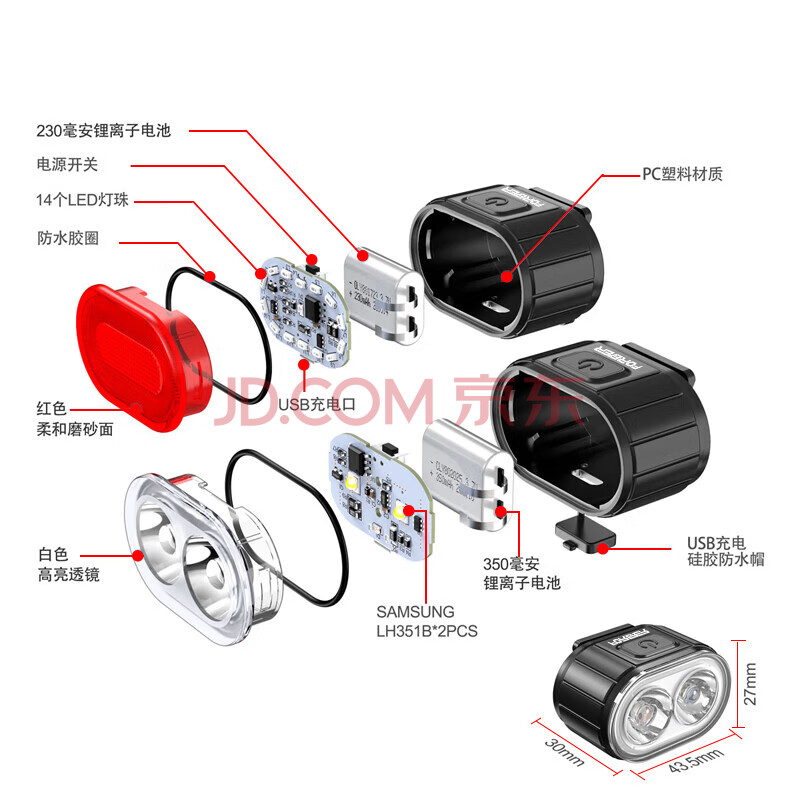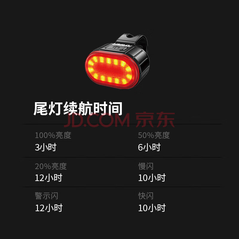 商品相册:永久自行前灯尾灯组合装夜骑照明防水安全警示充电车灯山地车童车骑行装备配件车前灯+后灯第