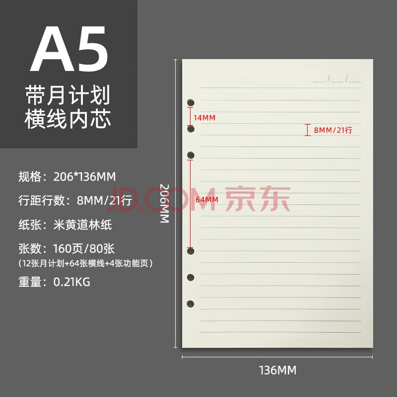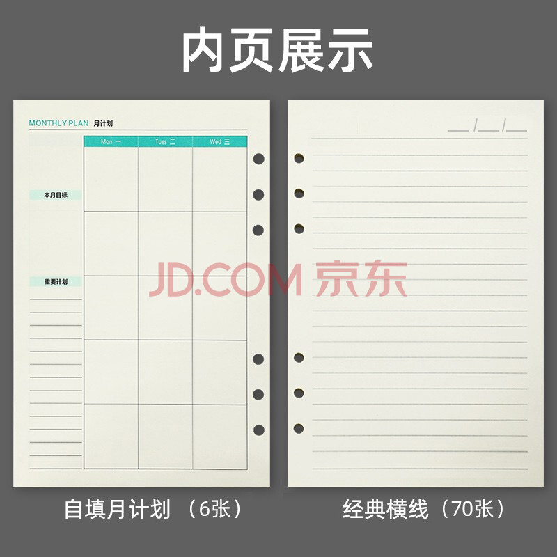 商品相册:嘉然恒 活页本替换内芯活页纸笔记本本子横线加厚替芯A5/6孔内芯80张/本 A5含月计划升级款横线内芯1本第