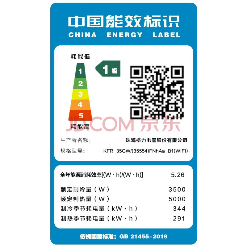 商品相册:格力 新能效 正1.5匹 I耀 新一级能效 变频冷暖空调 智能挂机 KFR-35GW/(35554)FNhAa-B1(线下同款)第
