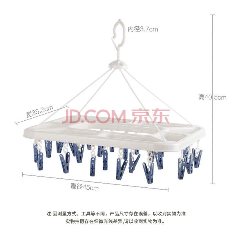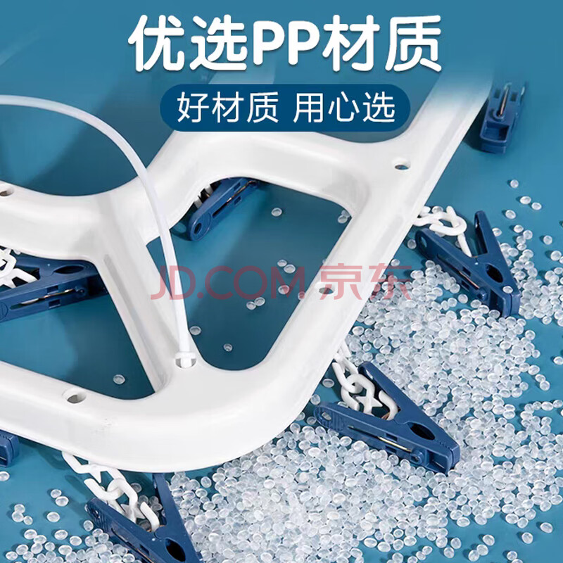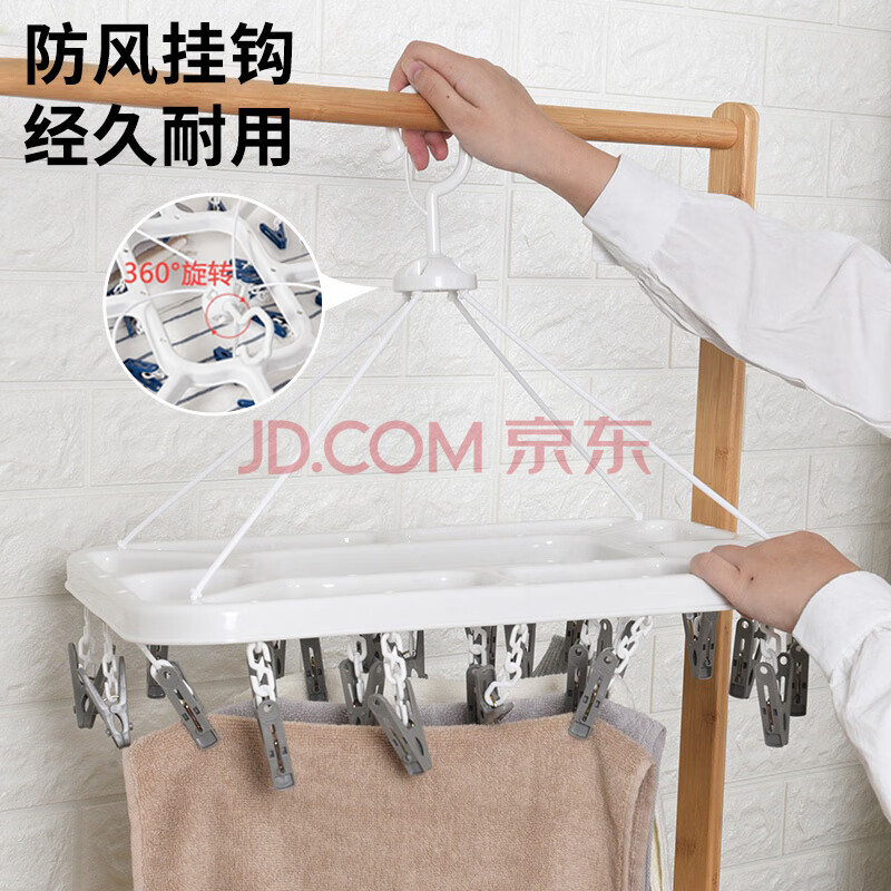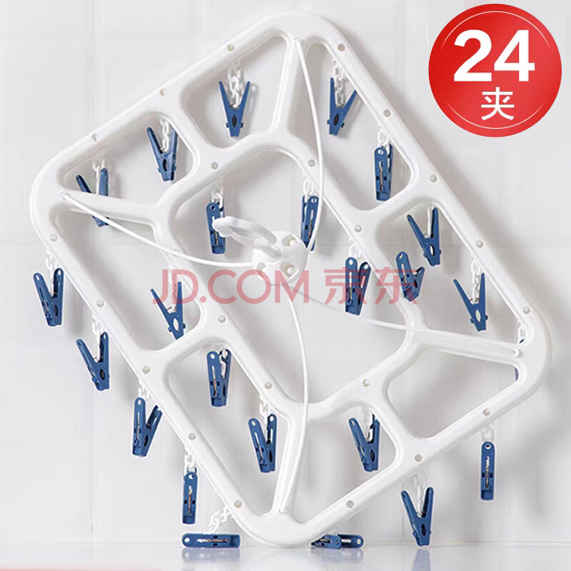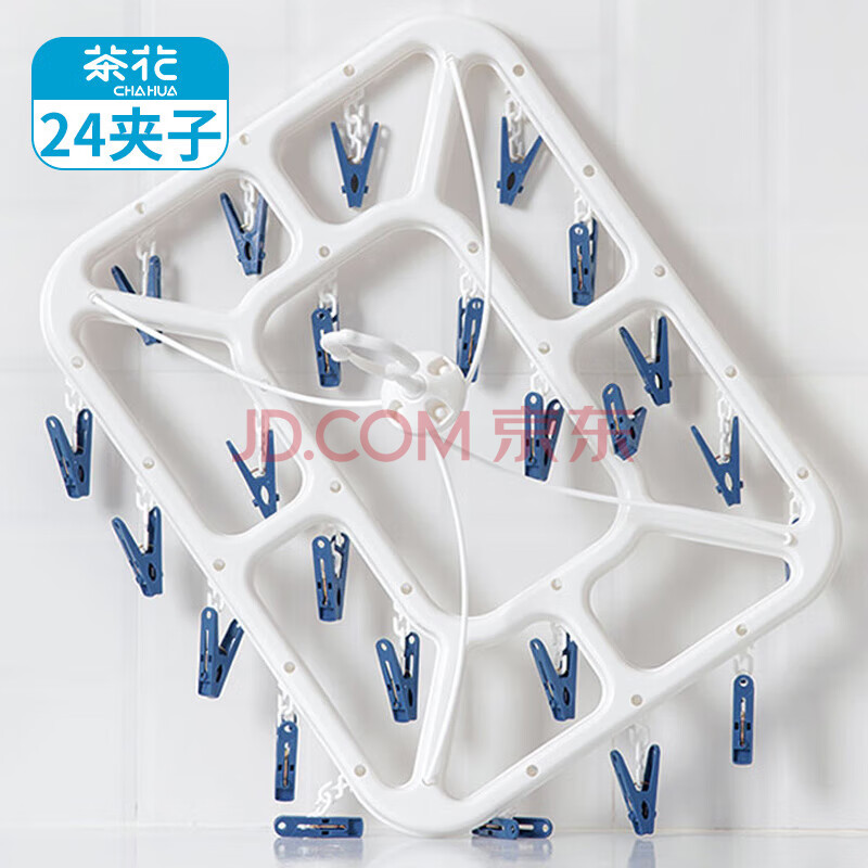 商品相册:茶花 衣架子带晾衣夹子晾衣架 晒袜子架内衣架凉袜子袜架挂架24夹子蓝第1张/共7