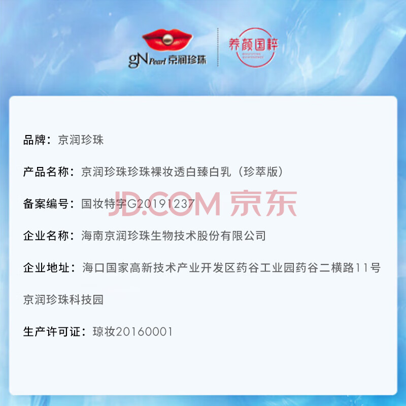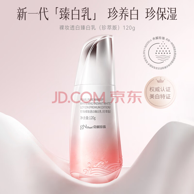 商品相册:京润珍珠(gNPearl)裸妆透白臻白乳美白补水改善暗沉提亮肤色保湿面部护肤品女男120g第