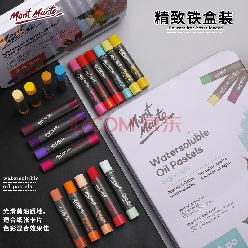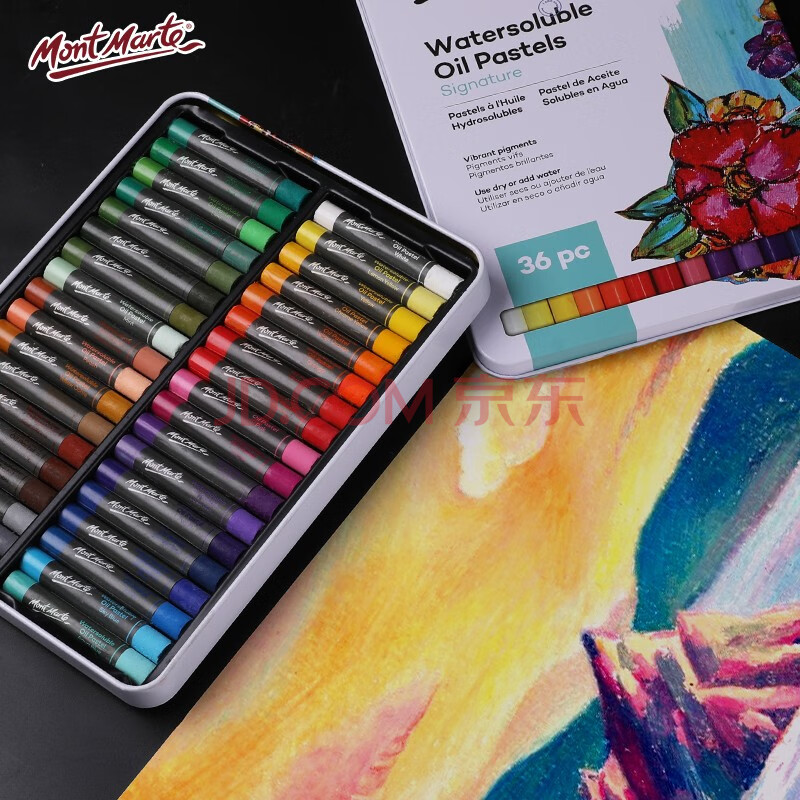 商品相册:【全网低价】蒙玛特(Mont Marte)油画棒36色 水溶性油画棒儿童绘画画笔涂鸦画画蜡笔套装 美术不脏手水洗铁盒装MMPT0028美术写生第
