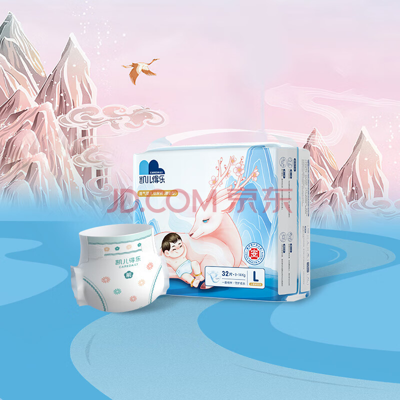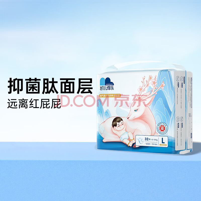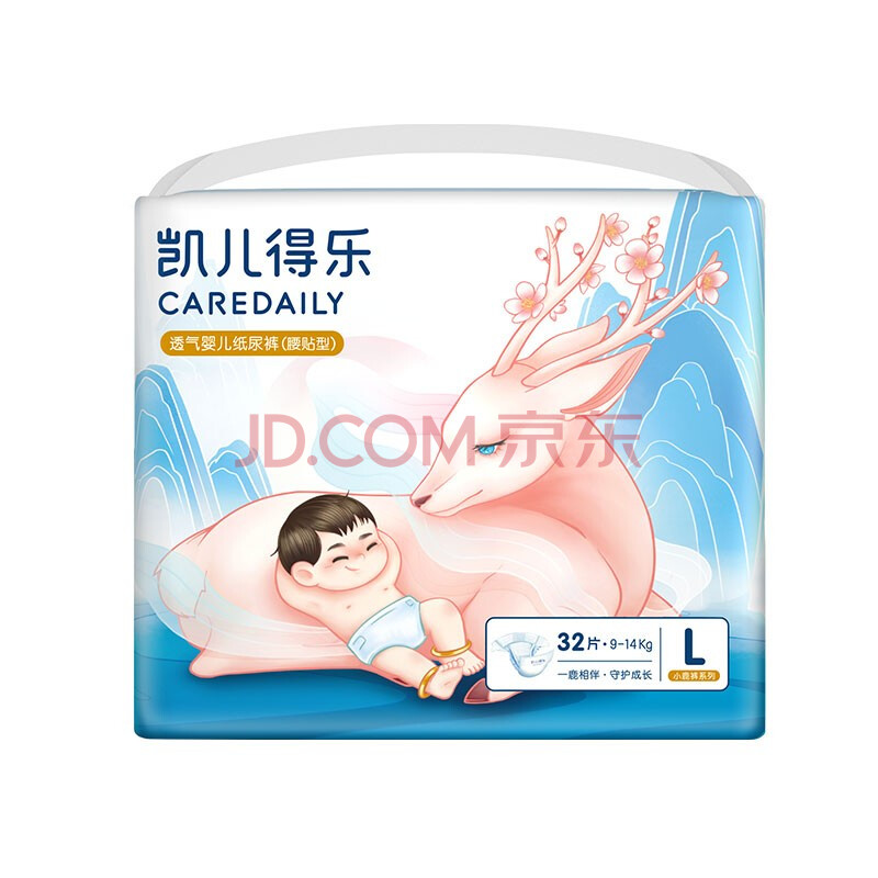 商品相册:凯儿得乐care daily小鹿裤纸尿裤L32片(9-14kg)超薄透气大码婴儿尿不湿第