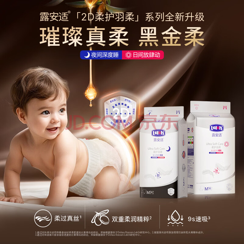 商品相册:露安适(Lelch)柔护羽柔裤夜用纸尿裤M54(6-11kg) 干爽舒适婴儿纸尿裤尿不湿第