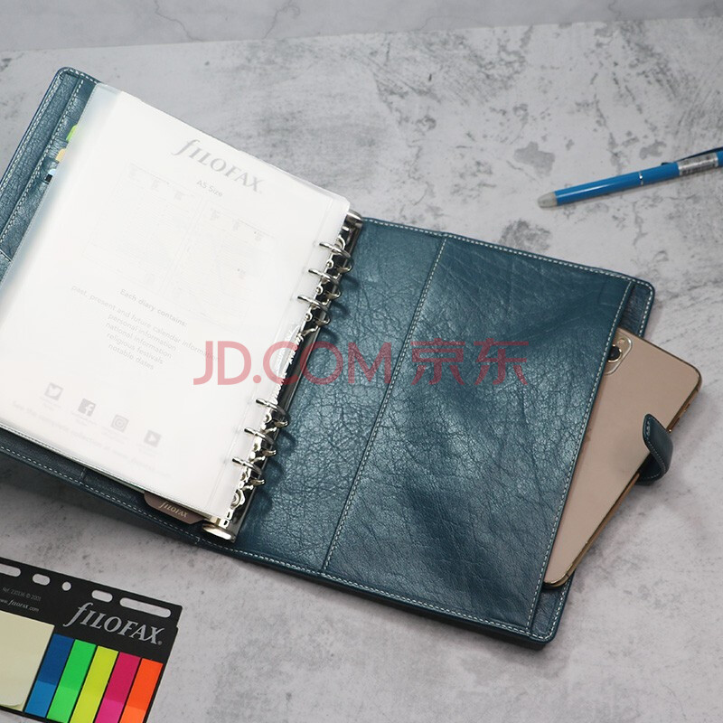 商品相册:Filofax记事本高档真牛皮活页手帐多功能商务办公会议日程笔记本礼盒装holborn系列A5蓝色025606第