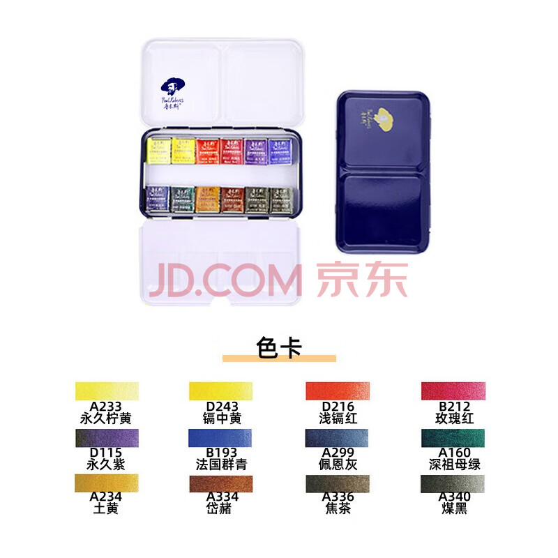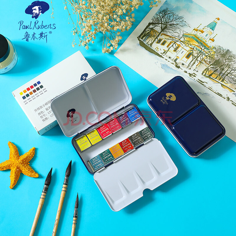 商品相册:鲁本斯(PaulRubens)12色固体水彩颜料套装常用款便携水粉色彩颜料儿童初学美术生工具-靛青盒010903006第