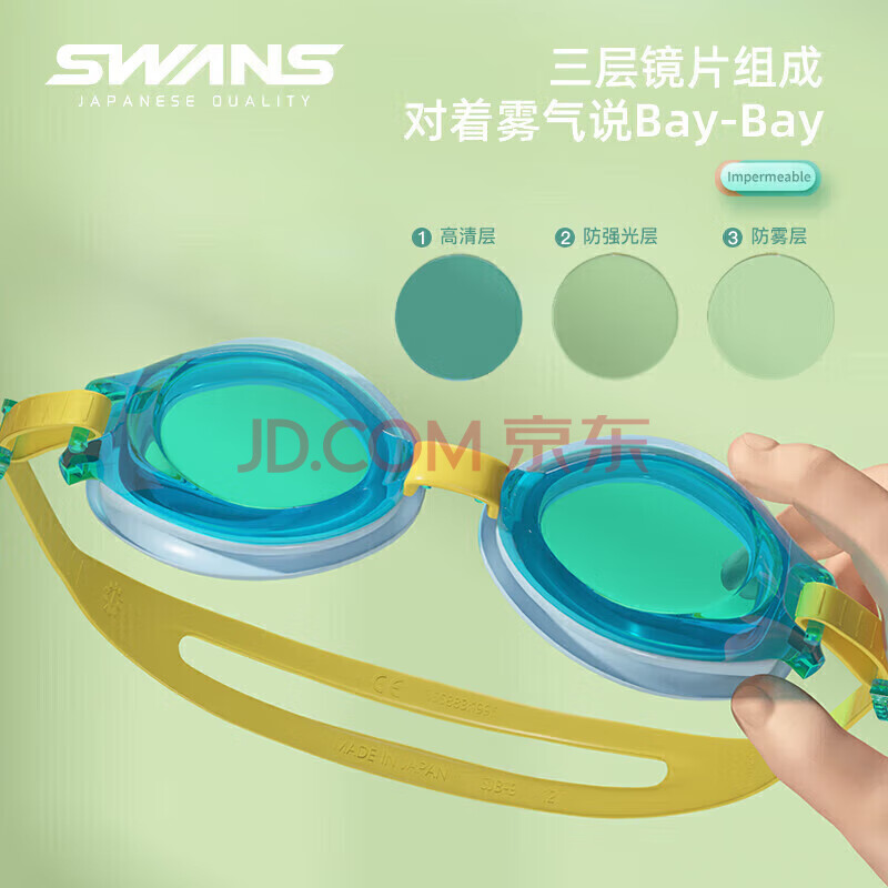 商品相册:SWANS儿童泳镜日本进口男童防水防雾高清女童中大童游泳眼镜泳帽 蓝黄第