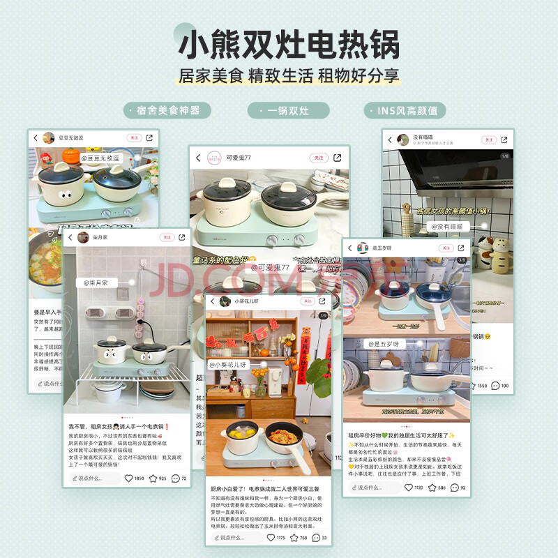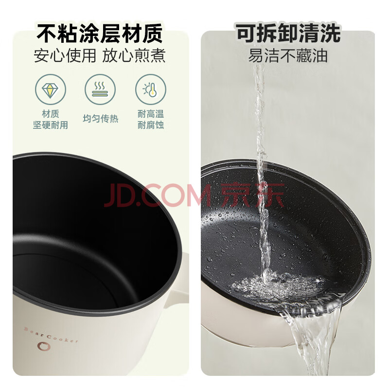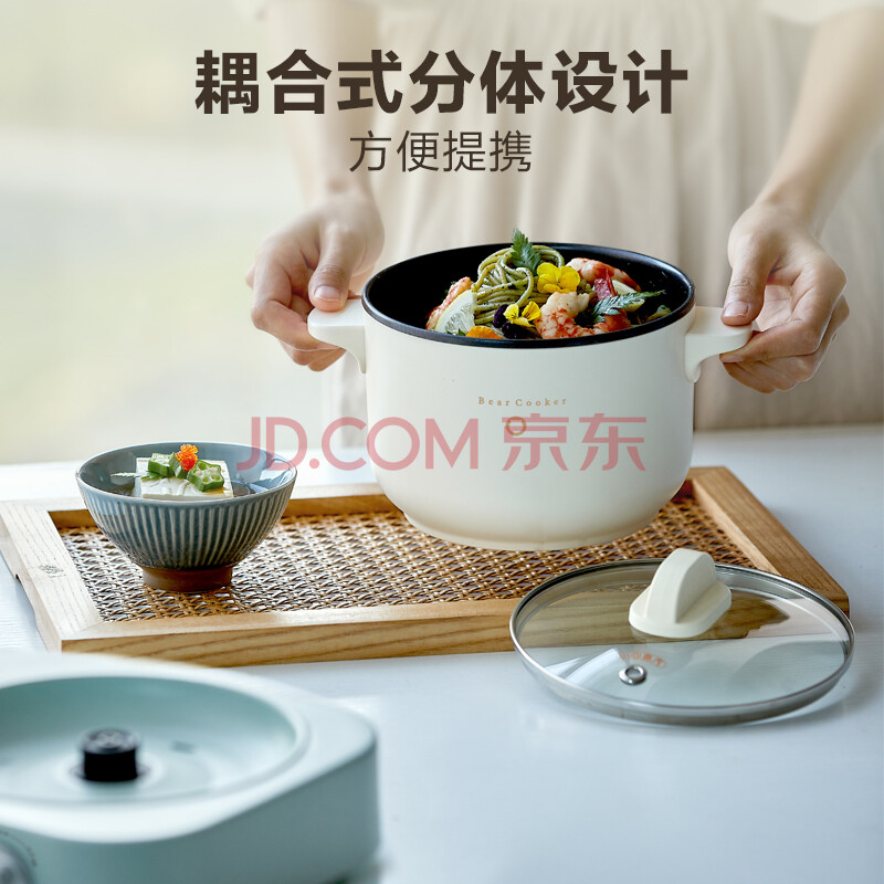 商品相册:小熊(Bear)双灶电煮锅 电炒锅 多功能电火锅分体式煎炒焖煮料理锅宿舍用小煮锅 电热锅 E12J1配蒸笼第
