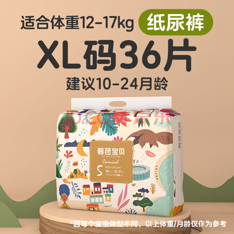 商品相册:碧芭宝贝丛林狂想曲纸尿裤XL码36片(12-17kg)尿不湿超薄透气 亲肤不闷热第