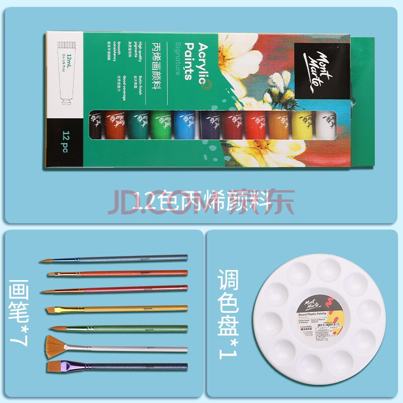 商品相册:蒙玛特(MontMarte)丙烯颜料12色diy防水颜料丙烯盒装画石头画不掉色初学画鞋子V美育工具第