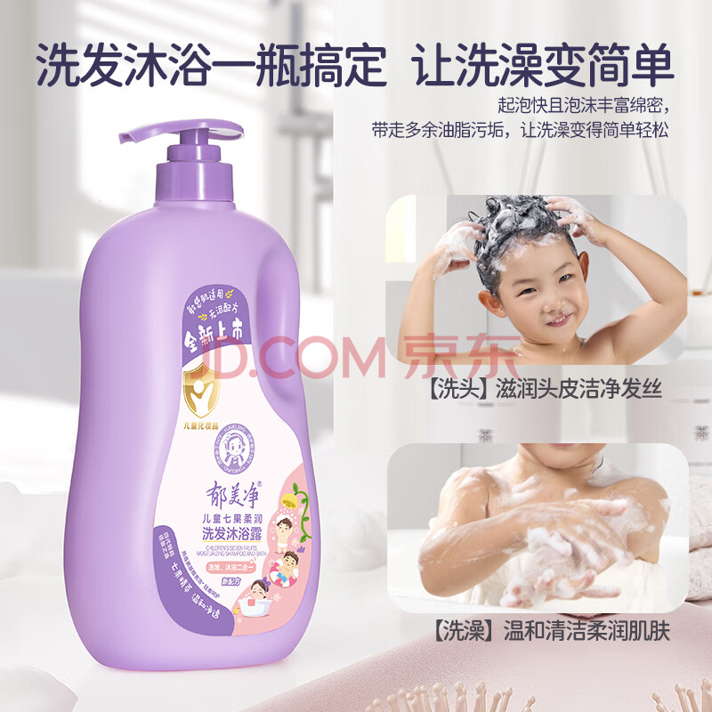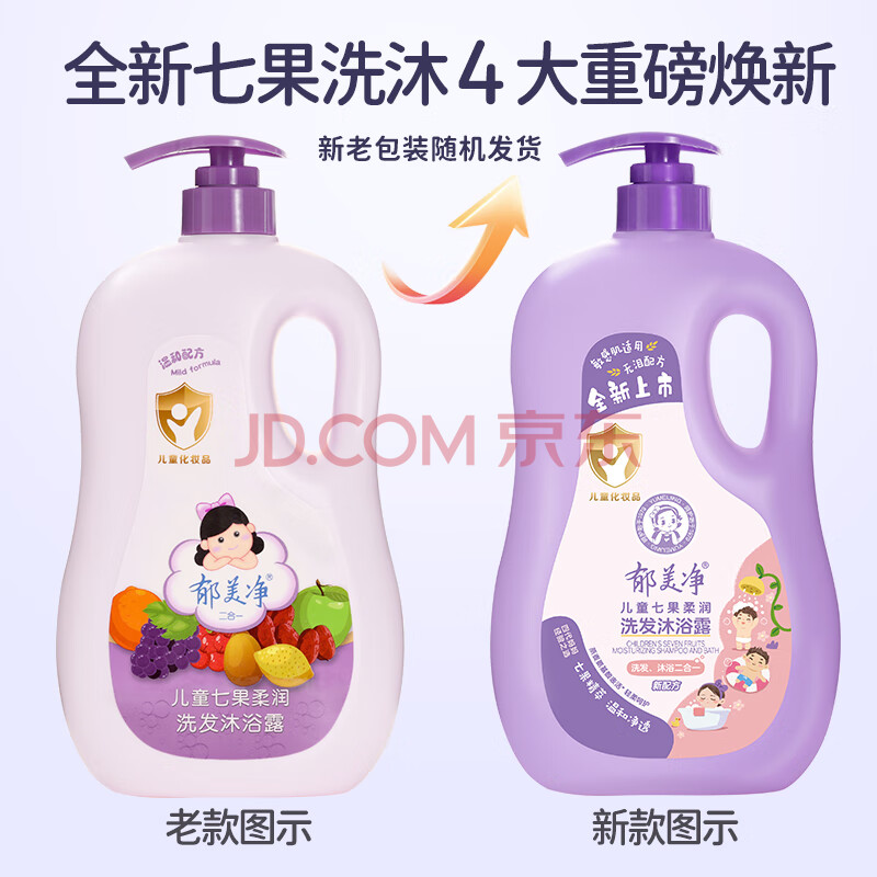 商品相册:郁美净鲜奶七果儿童沐浴露洗发水二合一宝宝沐浴新老包装随机发货1kg第
