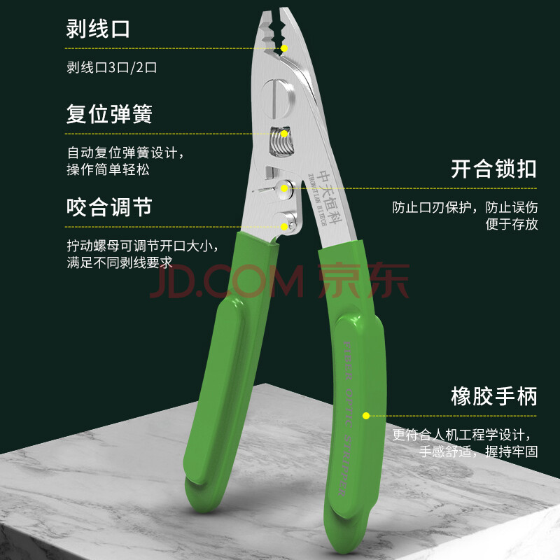 商品相册:中天恒科 光纤三口米勒钳 剥线钳剥纤钳 FTTH冷接跳线尾纤 光缆光纤工具涂覆层剥离弥勒钳 ZT-503第