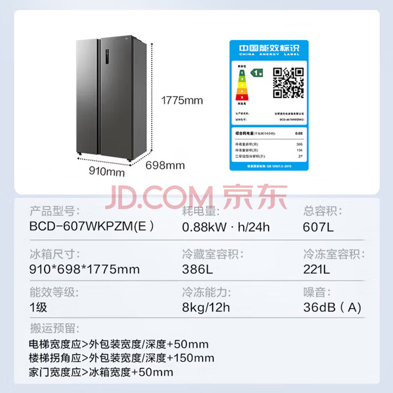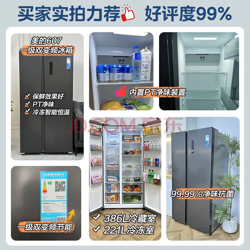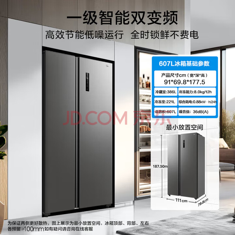 商品相册:美的(Midea)607升对开门冰箱大容量一级能效双变频超风冷无霜节能BCD-607WKPZM(E)第