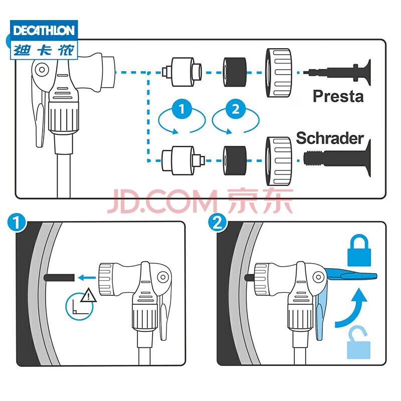 商品相册:迪卡侬家用脚踩自行车通用打气筒高压法嘴脚踏款(附带气针) 1829305第