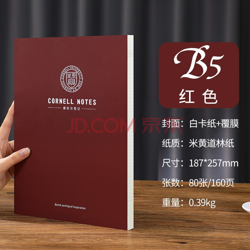 商品相册:嘉然恒 B5康奈尔笔记本本子学习5R高效记忆思维导图大学生复习考研考公备考记事本-横线款-酒红第