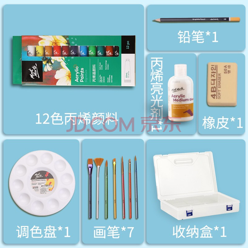 商品相册:蒙玛特(MontMarte)丙烯颜料12色diy防水颜料丙烯套装盒装画石头画不掉色儿童涂鸦收纳盒套装V美育工具第
