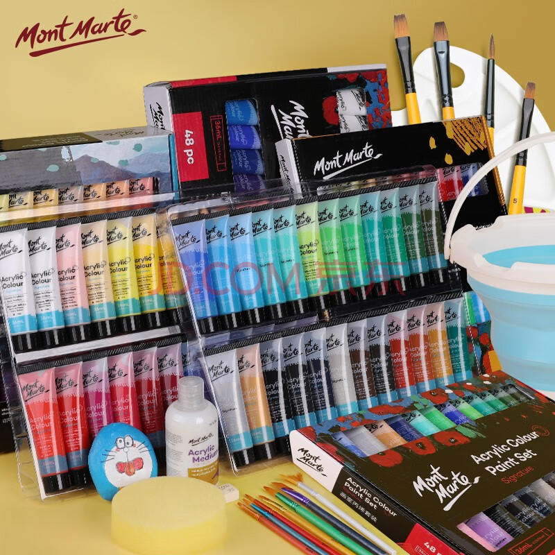 商品相册:蒙玛特(MontMarte)丙烯颜料48色36ml丙烯画颜笔画刷铅笔橡皮调色盘调和液VSX-MSCH36MLXLTZ-48S美育工具第